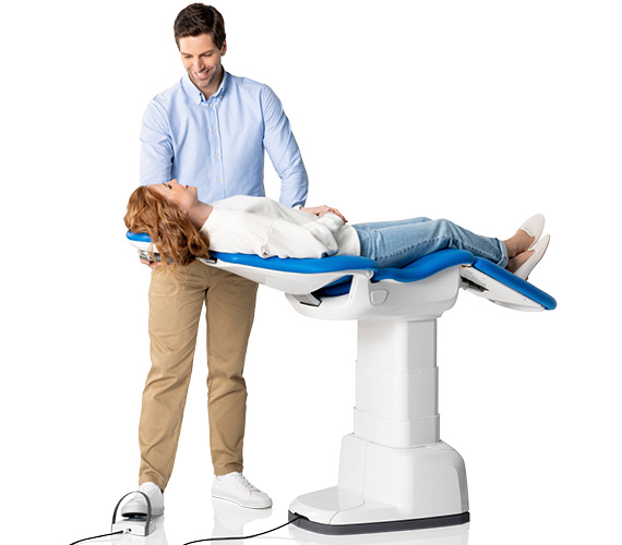 Planmeca Pro50 Chair offre une vaste plage de réglages de la hauteur : la hauteur du siège du patient peut varier entre 390 mm et 890 mm. Le fauteuil permet aux professionnels dentaires de toutes tailles de travailler assis ou debout. La petite base du fauteuil laisse suffisamment de place aux jambes du praticien et de l’assistant ainsi qu’à la pédale de commande et d’autres appareils. Le dossier mince et étroit permet à l’équipe soignante de se rapprocher du patient, toujours dans la position de travail la plus ergonomique.