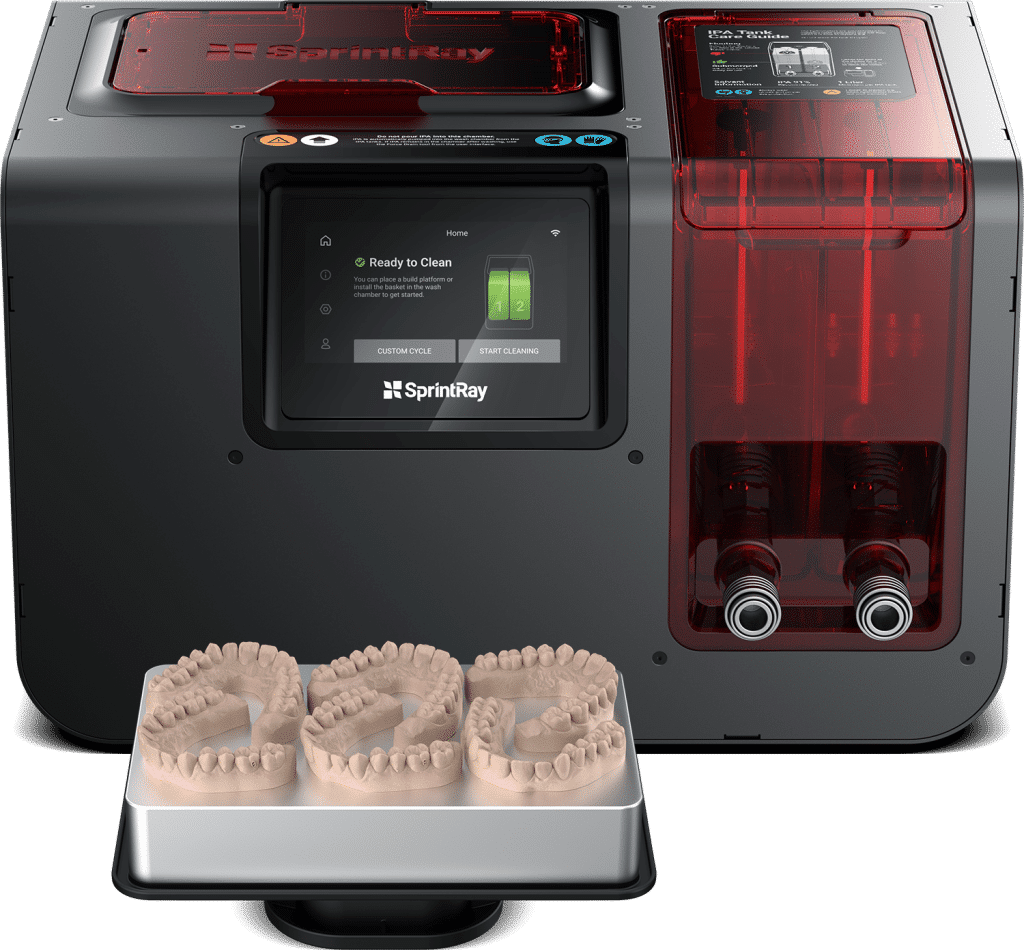 Le ProWash S de SprintRay est la station de post-traitement automatisée pour les pièces imprimées en 3D. Son système de lavage en deux cycles suivi d’un séchage automatique prépare parfaitement les pièces pour la post-polymérisation.